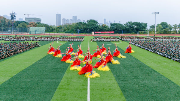 由1500余名新生组成的花样方阵成为全场焦点,他们依次变换出“1919”“五四运动”“1921”“红船会议”“1949”“天安门”“中国我爱你”等造型,致敬祖国,现场十分壮观。队员们齐声高呼“听党指挥,能打胜仗!”“祖国万岁!”“正义必胜,和平必胜,人民必胜!”等铿锵誓言,将对历史的致敬、对祖国的热爱与对和平的捍卫融为一体,深情回溯了党的百年光辉征程,并以此特别方式致敬抗战胜利80周年。