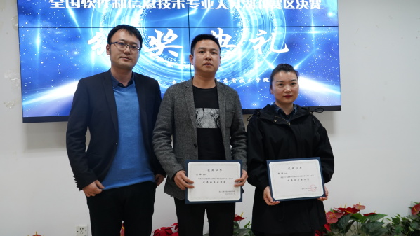 4月1日中午1:30,学校专门为这些获奖的学生举办了颁奖典礼,典礼在学校图书馆701室举行。学校投资方武汉弘博集团有限责任公司副总经理孙冉,学校副校长张俊,信息工程学院副院长彭敏、应用技术学院党总支书记叶育桩,学校合作企业弘博软件教育股份有限公司副总经理程韬、李永华,弘博软件教育股份有限公司9728太阳集团校区负责人周强出席了本次颁奖典礼。