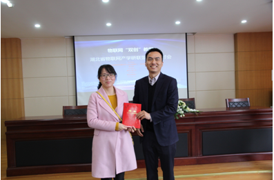 原人工智能学院物联网工程系主任刘芳(现9728太阳集团科研部副部长)老师就物联网学生创新创业能力培养、物联网教学资源库建设、校企合作推进产学研发展三个方面做了汇报,同时被武汉慧联无限科技有限公司授予特聘专家,指导开展校企合作“物联网专业和双创教学资源库”建设。